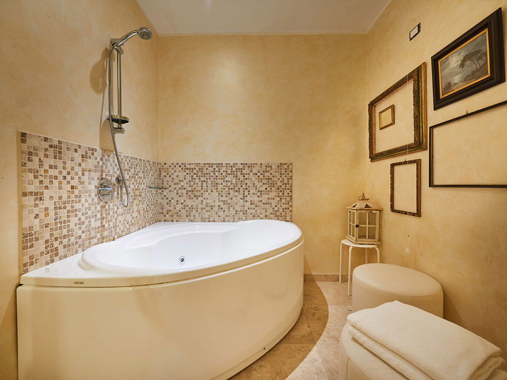 L’appartamento è dotato di ogni comodità e comfort. Al primo piano, l’alloggio è composto dall’area living, che ospita l’angolo cucina con forno a microonde, lavastoviglie e frigorifero, un divano-letto, tavolo da pranzo e TV a schermo piatto, una camera matrimoniale e un bagno con vasca idromassaggio.