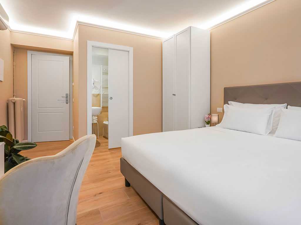 Le Matrimoniali Superior sono un vero e proprio nido d’amore, ideali per chi ricerca un soggiorno comodo, funzionale, tra dettagli di colore e arredi in stile fiorentino, in perfetta armonia con il contesto circostante.